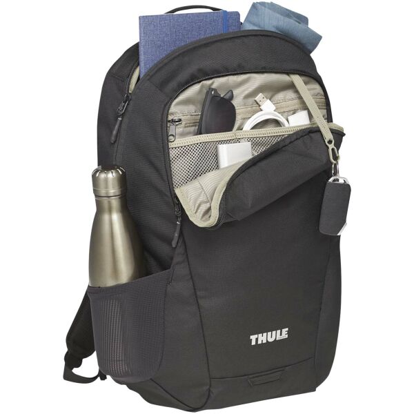 The Thule Lumion 16'' laptop backpack is made from recycled polyester, and features a front zippered pocket for organisation as well as a larger zippered compartment with a padded 16'' laptop sleeve. The top carry handle allows you to grab and go while the padded back panel provides lower lumbar support. A side water bottle pocket and daisy chain webbing are bonus features of this backpack.