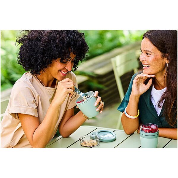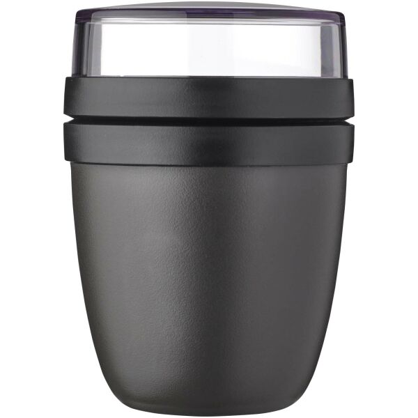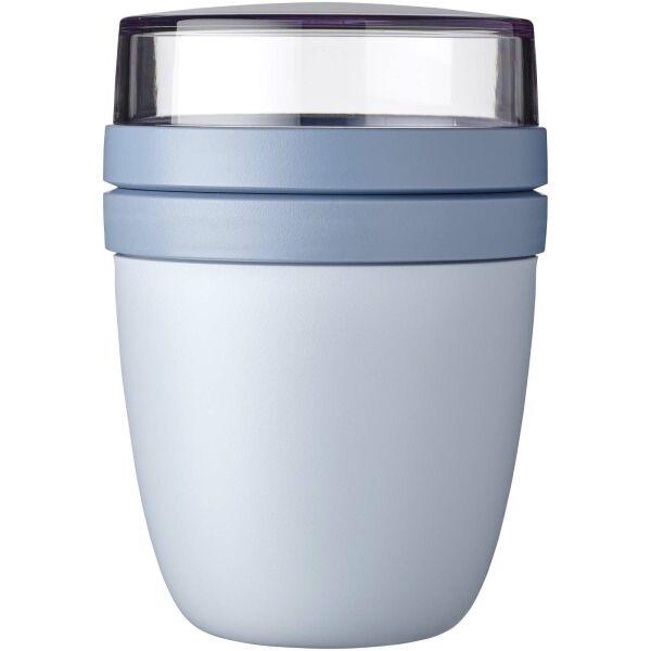 The Ellipse Mini lunch pot is perfect for a variety of snacks, such as yogurt with muesli or soup with croutons. Featuring two smart compartments in one sturdy container, it keeps your ingredients neatly separated. Its compact size makes it ideal for easily fitting into a school bag for a quick, convenient meal. The top transparent container holds 120 ml, ideal for around 50 grams of muesli or fruit, and the bottom container has a capacity of 300 ml. Leakproof and dishwasher safe. BPA free.