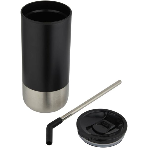 Featuring a double-walled insulated design, this tumbler comes with a recycled stainless steel straw topped with a silicone tip for comfortable use. The inner wall is made from PP plastic, while the outer wall is crafted from RCS-certified recycled stainless steel. A sliding lid made from PS and ABS plastic, combined with a matte coating, gives the tumbler a sleek finish. Volume capacity: 480 ml.