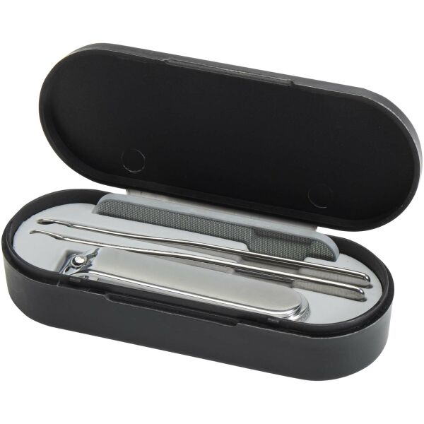 The Beautix manicure set includes all the essentials for well-groomed nails and clean, detailed care. It features a smooth glass nail file, durable nail clippers, a precision cuticle stick, and an ear spoon for versatile grooming. Compact and portable, it’s ideal for both at-home use and on-the-go touch-ups.