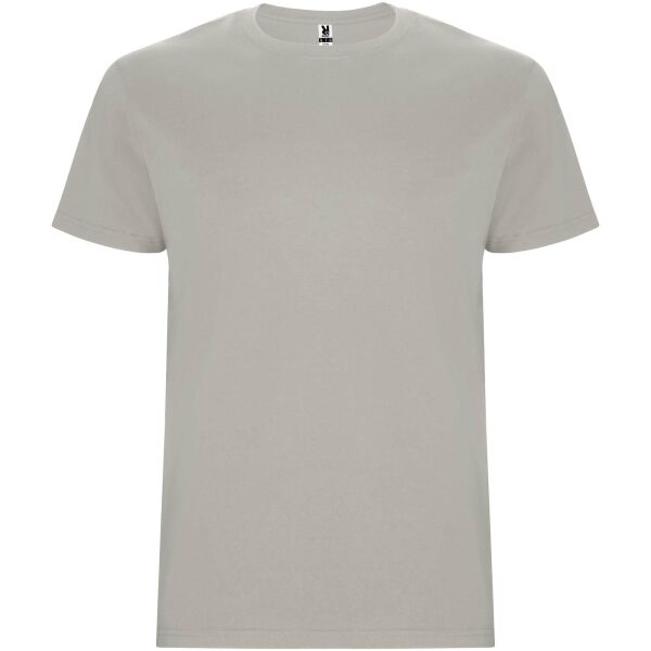 Tubular short-sleeved t-shirt in adult sizes and with side seams in kid's sizes. 1x1 ribbed round neck. Taped neckline in matching fabric.